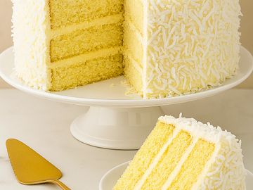 Our lemon coconut cake is made with moist, freshly baked lemon cake infused with lemon juice, extracts, and butter. This indulgent cake is then topped with a freshly prepared lemon frosting and finished with a sprinkle of tender coconut.