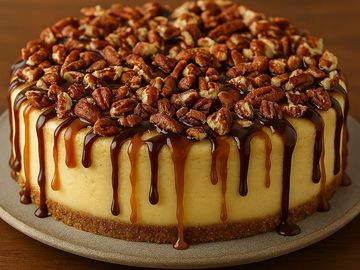 Our gourmet pecan caramel cheesecake is a delightful treat that combines creamy richness with a nutty twist. The smooth cheesecake base, made with high-quality cream cheese and a touch of vanilla, sits on a buttery graham cracker crust. It’s topped with drizzles of handcrafted caramel and a generous helping of pecans, creating a perfect mix of smooth, crunchy, and gooey textures. Sweet yet slightly savory, this dessert leaves a lasting impression with every bite.