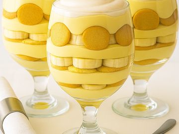 Our decadent treat is truly special, featuring freshly made, indulgent banana-flavored pudding. It starts with crumbled vanilla wafers layered with rich, small-batch banana pudding, optionally topped with fresh banana slices, and finished with a generous dollop of vanilla whipped topping.