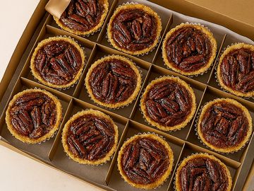 Elevate your dessert course with our luxurious mini pecan pies—a handcrafted classic reimagined for the discerning palate. Nestled in a buttery, golden crusts, the filling is a rich blend of caramelized brown sugar, fresh eggs, a touch of vanilla, and sweet spices for depth. Crowned with a meticulous layer of pecans, each piece delivers crunch and silk, sweetness and warmth. Baked to perfection, this upscale dessert is a celebration of Southern tradition with a gourmet twist—ideal for gatherings