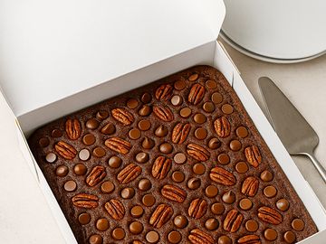 Satisfy your sweet tooth with our Loaded Brownie— a rich, chewy indulgence handcrafted for the true dessert connoisseur. Infused with cocoa, fragrant vanilla, and creamy butter, this gourmet brownie delivers layers of flavor in every bite. Studded with plump raisins and velvety milk chocolate chips, it’s a textural delight that balances fudgy richness with bursts of sweetness. Finished with a crown of toasted pecans for a nutty crunch, this brownie is anything but ordinary — it’s a decadent mosa