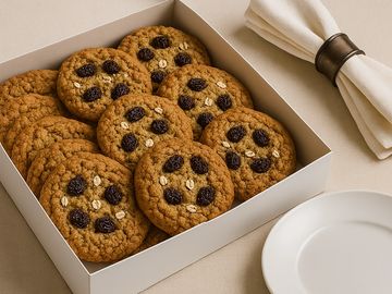 A timeless treat elevated for the discerning palate. Our gourmet Oatmeal Raisin Cookie is lovingly crafted with rich butter, fragrant vanilla extract, and a whisper of warm cinnamon. Whether you prefer a soft, chewy center or a crisp, golden edge, each cookie delivers a comforting balance of texture and flavor. Hearty oats and plump, sun-dried raisins add rustic charm and natural sweetness, making this homemade classic a cozy indulgence with every bite.