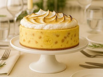 Bright, tangy, and irresistibly smooth—our Lemon Meringue Cheesecake is a gourmet twist on a timeless classic. This elegant dessert features a luscious lemon-infused cheesecake topped with a layer of zesty lemon custard, over a buttery crust, crowned with toasted meringue. Each bite delivers a perfect harmony of citrus zest and creamy richness, making it a radiant centerpiece for any refined occasion.